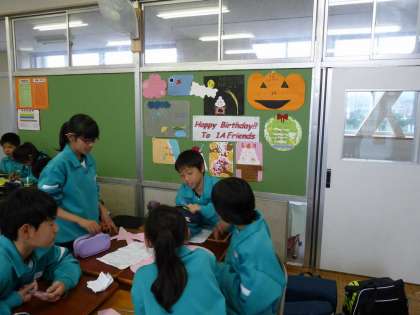 1年生は、学級の掲示物をつくっています。