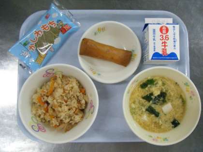 今日は、少し早いですがこどもの日献立でした。こどもの日には、ちまきや柏餅が食べられます。中国では古くからの伝説にちまきが邪気払い、厄払いの力があるとされていたため端午の節句(こどもの日)に食べられるようになったそうです。