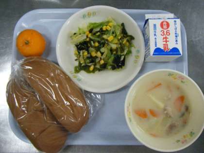5月11日 今日の給食 公開日 2017/05/12 更新日 2017/05/12 健康・安全 【今日の献立】 ・黒糖入りロールパン ・豆乳のクリームシチュー ・海藻サラダ ・冷凍みかん(寿太郎みかん) ・牛乳 今日は、バターや牛乳は使わず豆乳でシチューを作りました。ルウは、サラダ油と小麦粉で作り牛乳のシチューと比べると、さっぱりとした味になりました。 いいね(0)