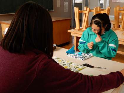 今月下旬に学習発表会が行われますが、そのあとに生徒たちが作った様々な製品の販売があります。現在、その作製作業に追われています。限られた時間の中ですが、細かいところに気を配ったり、能率良く行えるよう手順を工夫したりしてがんばっています。