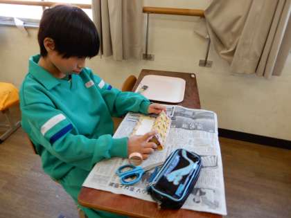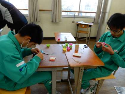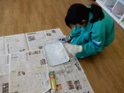 左から牛乳パックを再利用した卓上カレンダー作り、ろうそくを砕いて固めて作業するミニ富士山ローソク作りです。