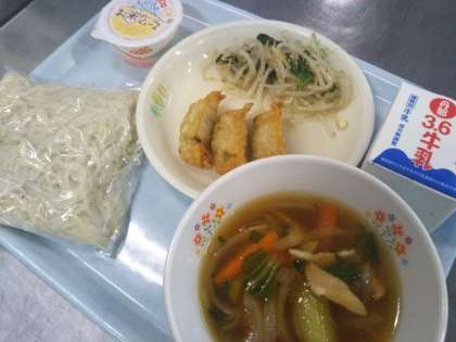 今日は、中学校3年生のリクエスト献立でした。3クラスの中でラーメン、餃子が一番人気でした。また、ラーメンの味は多数決で醤油味に決まりました。3年生は給食も残り7回。クラスの仲間との時間を大切にしてほしいですね。