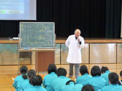3月8日(木) 第5時に学校薬剤師の渡辺忍先生による薬学講座を行いました。