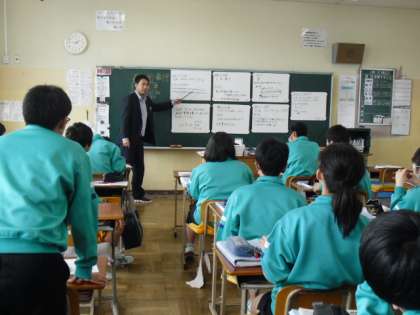 3年生は日露戦争の風刺画を読み解く授業でした。授業者が「なぜ、日本人の後ろにいる人がイギリス人と言えるのか?」という問いかけをすると、「あ、そうか、日英同盟だ」と、既習知識をもとにつないで考えることができました。なんとなく見ていた風刺画が、実は深い意味を持っているということを学べた、貴重な時間でした。