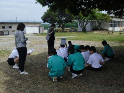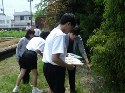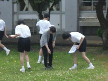 理科(D組)の授業を参観しました。ふだんは、タンポポ、ツツジ、シロツメクサくらいしか自覚していませんでしたが、探してみると春がいっぱいです。カラスノエンドウやハルシオンなどなど。テントウムシやトンボまで見つけることができました。中庭や農園の周辺にはたくさんの春があってすてきだなと思いました。