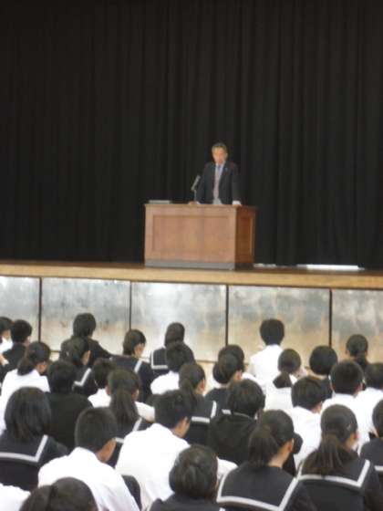5月の朝礼では、「今沢中学校の生徒にとって特別な歌」について、校長から講話を行いました。