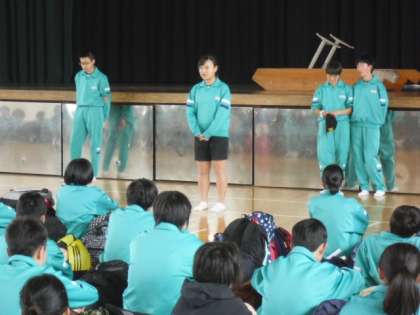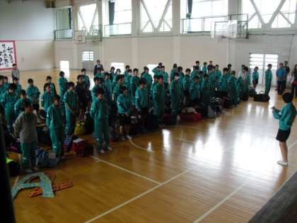 3時半頃、朝霧野外活動センターで宿泊していた2年生が、無事バスで帰校しました。充実感に満ちた表情、安心したような柔らかい表情の生徒を迎え、行事の成功に拍手を送りたいと思いました。この3日間の出来事について、ご家庭でお子様からたくさん聞いていただきたいと思います。準備段階から健康管理等でご配慮くださいました保護者の皆様、ありがとうございました。