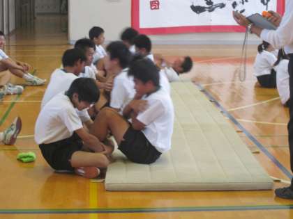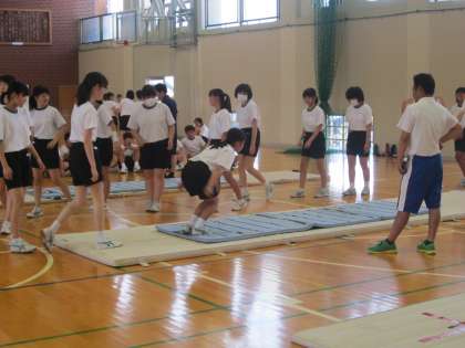 晴天の下、午前中の3時間を使って、新体力テストを実施しました。50m走、ハンドボール投げ、反復横跳び、握力、長座体前屈、上体起こし、立ち幅跳びを、体育館・柔道場・運動場に分かれて測定しました。(持久走は後日行います。)
