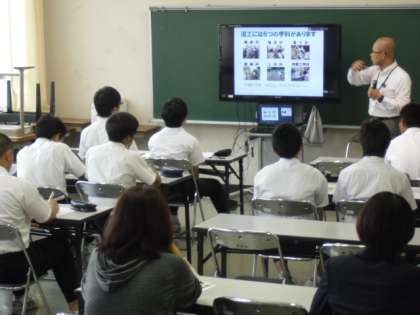 沼津城北高校、裾野高校、三島長陵高校、沼津工業高校、市立沼津高校、沼津東高校、沼津商業高校、沼津西高校、三島北高校、田方農業高校、富士市立高校、三島南高校に、沼津工業高等専門学校を加えた13校から副校長(教頭・准教授)様をお迎えし、ブース形式で学校説明会を開催しました。生徒たちは熱心にメモをとりながら食い入るように説明を伺っていました。希望した保護者の方もおみえになり、正しい進路情報の獲得に役立ったと思います。この日のためにプレゼンテーションを用意してくださいました関係校の皆様に、厚く御礼申し上げます。