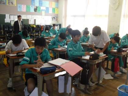 相互授業参観として、2年国語を参観しました。漢文の学習で『論語』を扱っていました。授業者は、「吾十有五にして学に志す」で始まる有名な一節を「一言で表現したらどうなりますか」と問いかけました。すると「孔子の人生」「孔子の歩み方」「孔子が年をとっていく」「孔子の道」などの意見が出ました。「では、孔子の人生などがどうであったのか、どんな考えをもっていた人なのか、もっと調べてみよう」と、さらに「論語」の文章を読み進めていったのでした。