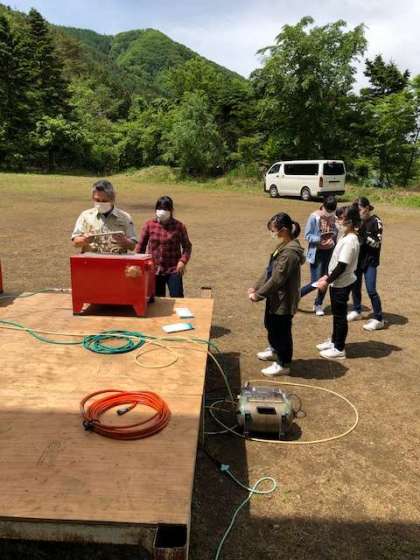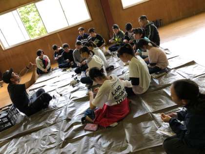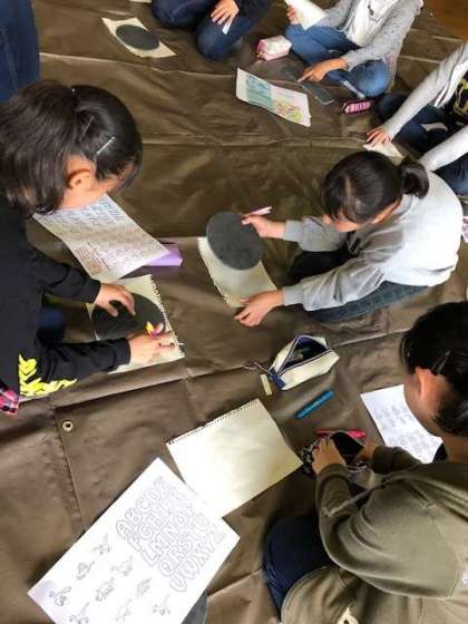カヌー、いかだ作り、サンドブラスト、バードコール・サンキャッチャーを体験しています。