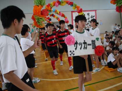 1・2年生は、この日に向けて運営の準備や、学級練習・合同練習を重ね、日ごろ一緒に活動し、あこがれでもある3年生に全力の校歌やエールの声を届けることができました。中でも、応援団員のみなさんは、昼休みにも練習に励んで人一倍汗をかいてがんばってくれました。