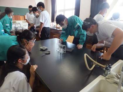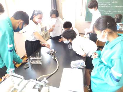 「金属の燃焼」の学習です。マグネシウムとスチールウールを燃焼させ、質量や状態の変化を調べました。