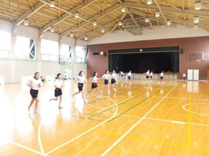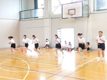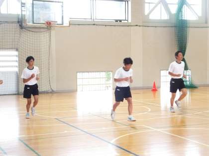 「シャトルラン」の授業です。新体力テストの種目の一つです。1回でも記録を伸ばそうと、自分の限界に挑戦しています!