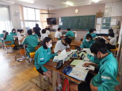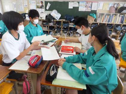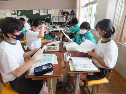 「『批判的に読む』とは」の学習です。筆者の主張に対しての自分の考えをまとめ、グループで共有しました。