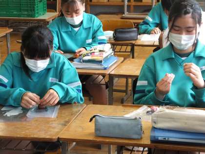 「季節の和菓子の制作」の授業です。自分でデザインした和菓子に近づくように、色や形を工夫をして作成しています。