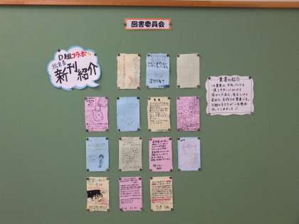 図書委員会の活動として、図書室に入荷した新刊紹介を作成しました。D組が作業学習で作成した和紙の葉書を使っています。とても興味深い紹介がたくさんあります!