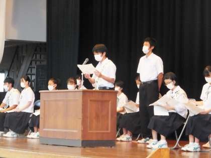 6時間目に体育館にて後期生徒会役員選挙立ち会い演説会を行いました。今回の選挙では、11名の生徒が立候補しました。一人ずつ、どのような今沢中にしていきたいかを考え、公約として全校生徒に伝えました。