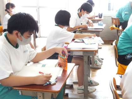 「課題作文」の学習です。「課題のグラフからどんなことが分かるだろうか。」という問いの答えを考えて、教科書を読みすすすめています。
