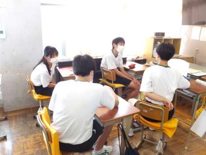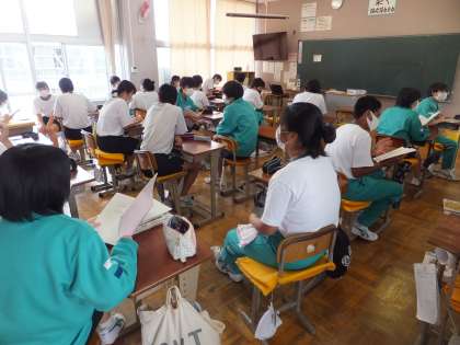 「戦後改革」の学習です。前回の授業で学んだことをペアで出題し合い、内容を確認しています。