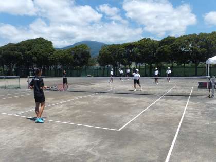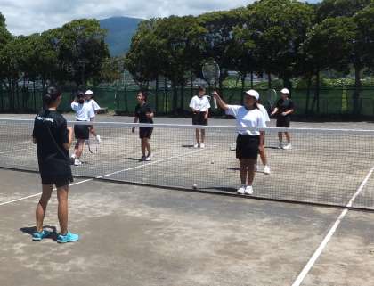 ボレーの練習です。ラケットの持ち方などを確認しながら練習に励んでいます!