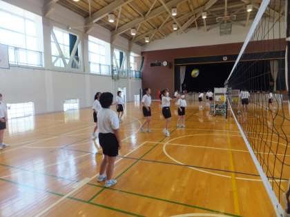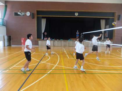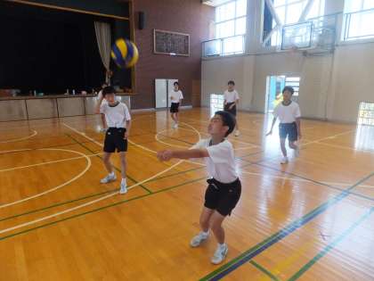 「バレーボール」の学習です。サーブやトスが上手くできるようになり、試合でもラリーが続くようになりました。