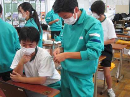 新型コロナウイルス感染症に関する差別や偏見のをなくそうと、3年生がシトラスリボンを作製しました。シトラスリボンに込められた思いを、いつまでも大切にしていきたいですね。