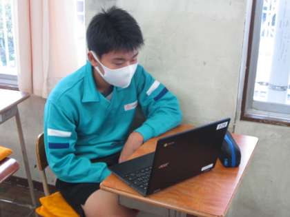普段は生徒会室に集まって行う生徒会本部の会議ですが、今回はリモートで行いました。chromebookの操作にも慣れ、意見交換などもしっかりと行うことができました。