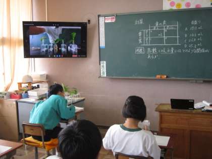 前回行った実験を振り返り、「蒸散と吸収量にはどのような関係があるか」を考察しています。それぞれの考えをレポートにまとめています。