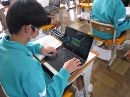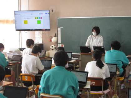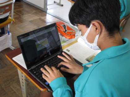「壁に残された伝言」の学習です。物語に対する自分の考えをJamboradに書き込み、グループごとで意見を共有しています。