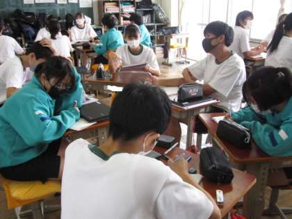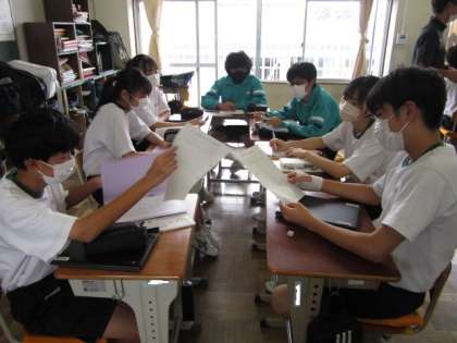 「沼津港のにぎわいを駅周辺へ」の学習です。前回までに考えた自分のアイディアをグループごとで発表しました。大事のポイントなどをメモにとりながら、それぞれのアイディアを出し合っていました。