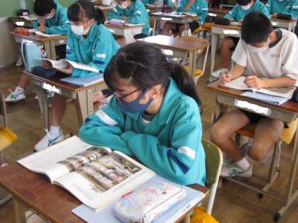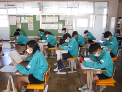 「未来に響け “復興和太鼓”」の学習です。苦しい中でも仲間とともに努力することの楽しさややりがいについて考えることができました。
