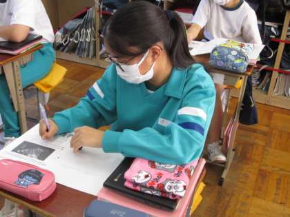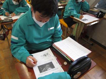 「Plastic Waste」の学習です。海水汚染によって傷ついた魚の写真を見て、思ったことや感じたことを英語で表現しています。