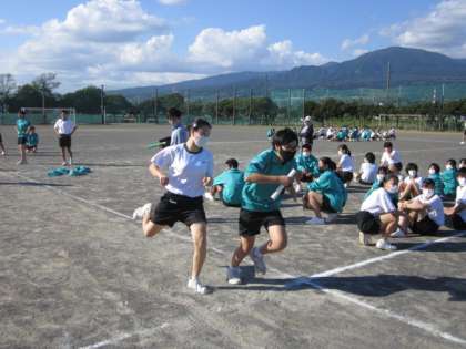 今日は3年生全クラスで初めての学級リレー対決です。どのクラスも「負けたくない!」という気持ちが表れ、一生懸命仲間にバトンをつなぎました。バトンパスの練習や走順などを工夫して、これからどんどん記録を伸ばしていきたいですね。