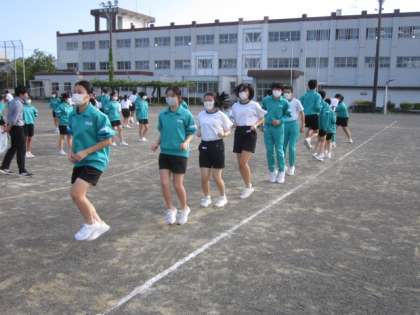 長縄練習の様子です。笑顔で一生懸命がんばっています!