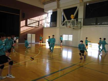三者面談中も、一所懸命部活動にとりくんでいます。男子バレーボール部は大きな声を出して元気にがんばっています!