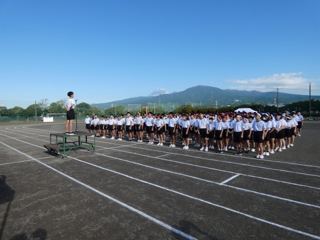 あしはら祭体育の部は、きれいな富士山をバックにしたラジオ体操から始まりました。続いて、今沢中で30年以上前から続く伝統の長縄です。2枚目が1A、順に1B、D・E、2A、2Bです。たくさんのドラマが生まれました!