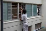 体育館のペンキ塗りを用務員の後藤さんが行って下さっています。