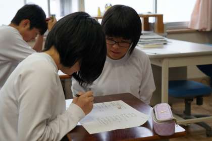 3年生は「英語」です。渡部先生に質問をする姿や教え合っている姿がみられました。