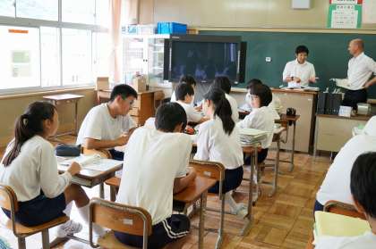 どの生徒も、積極的に練習しています。中には、ジェスチャーも交えて話す生徒も・・。