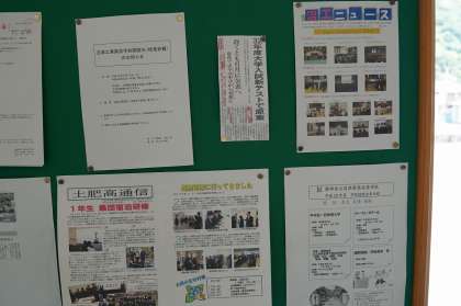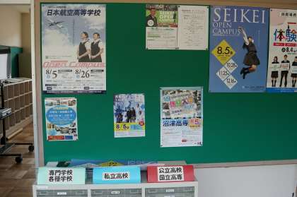 3Aの廊下には各高校の便りやポスターを掲示しています。