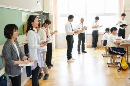 事前に、小中の教員で研修を行い授業案を作成して臨みました。