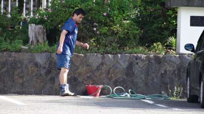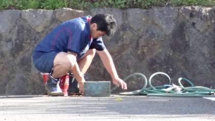 朝から、今日の技術科の栽培の授業の準備を山口先生が行っています。