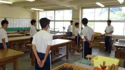 校舎内では、3年生を励ます会に向けて応援団が練習をしています。一輝先生の指導にも熱が入ります。