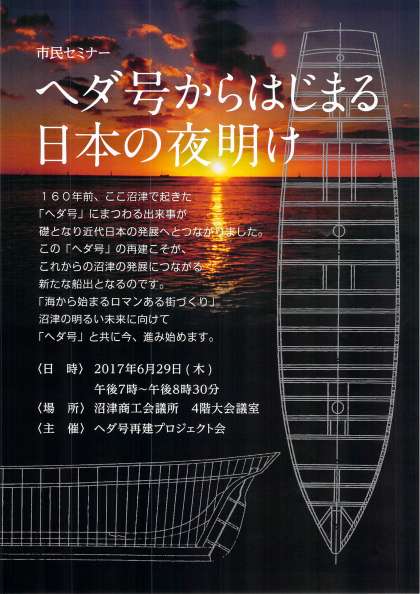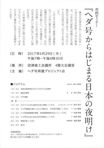 セミナーが実施されるようです。ご興味のある方、ヘダ号について学びたい生徒は、参加してみてはどうでしょうか。
