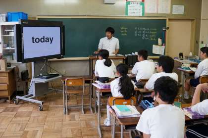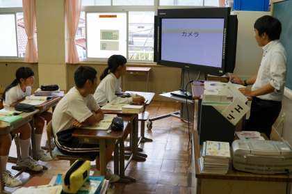通常は紙のカードですが、渡部先生は電子黒板を本当に上手につかいます。