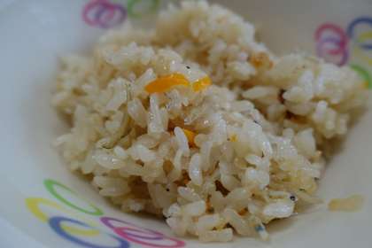 黒はんぺんにお茶がまぶしてありました。しらすの入ったご飯もおいしかったです。