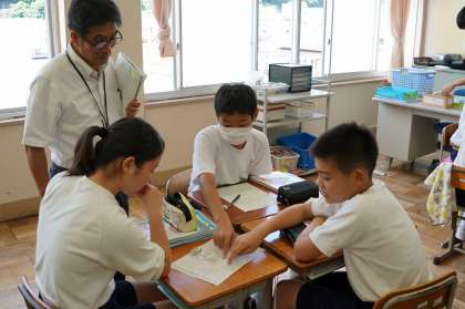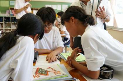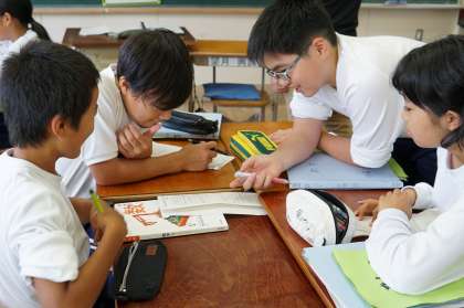 個人で等式、不等式を作った後、グループで自分の作った式を説明しあいます。