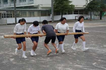 まずは、棒を運ぶ練習です。