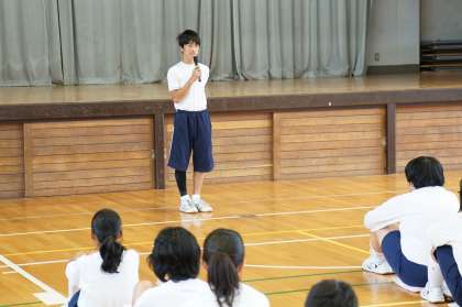 今日の生徒集会は、競技種目係からの注意を伝えた後、伝統のゲームを行います。